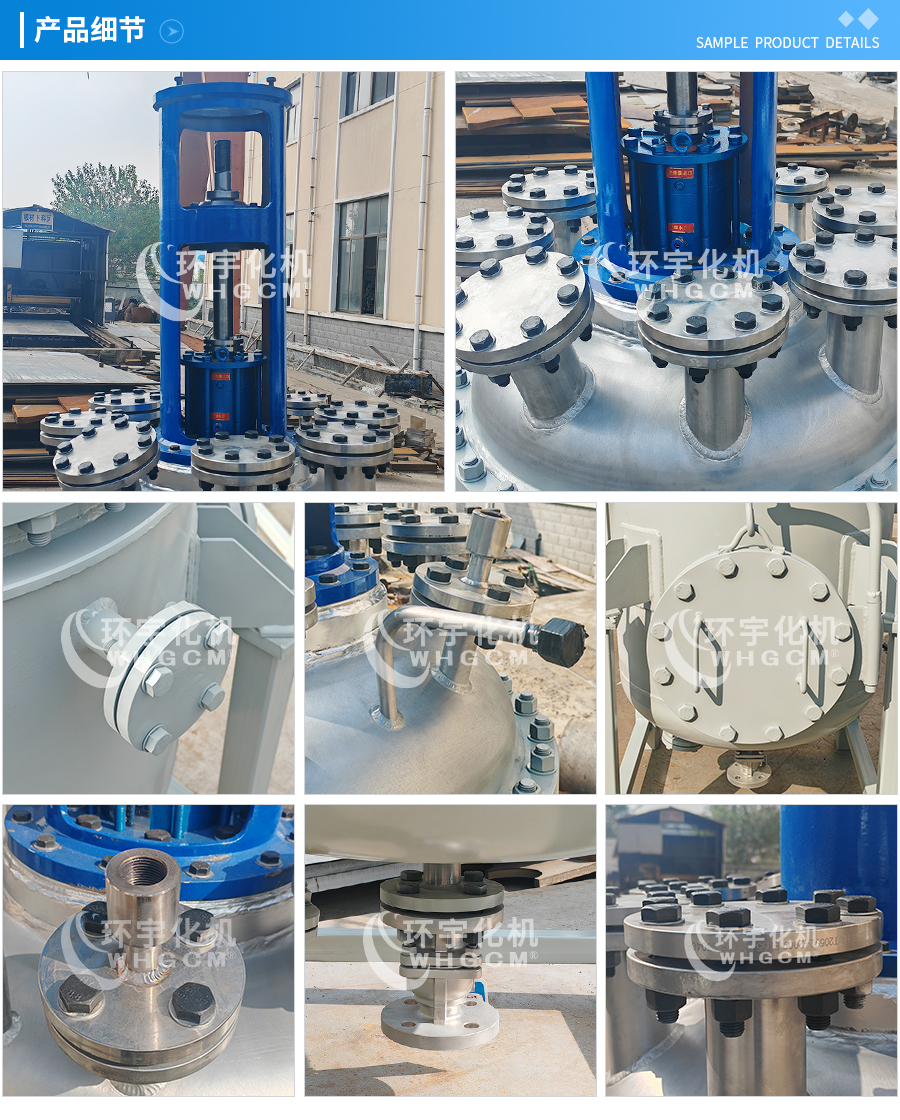 其他附件 如果用户在釜盖、釜体开口、内部结构、压力高低、搅拌桨叶、及增加其他辅助装置(如冷凝回流装置、冷凝器、恒压加料罐、接收装置)等有特殊要求,可完全按用户的要求加工制造