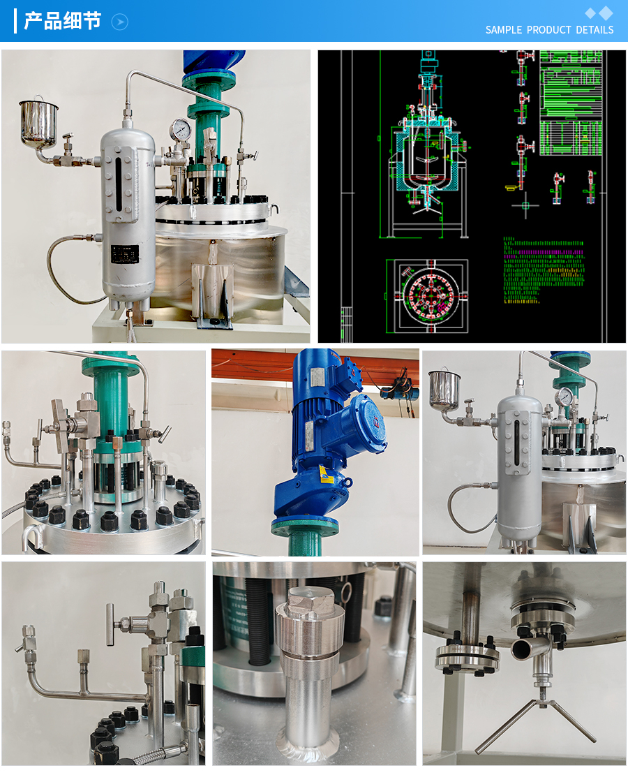 其他附件 如果用户在釜盖、釜体开口、内部结构、压力高低、搅拌桨叶、及增加其他辅助装置(如冷凝回流装置、冷凝器、恒压加料罐、接收装置)等有特殊要求,可完全按用户的要求加工制造