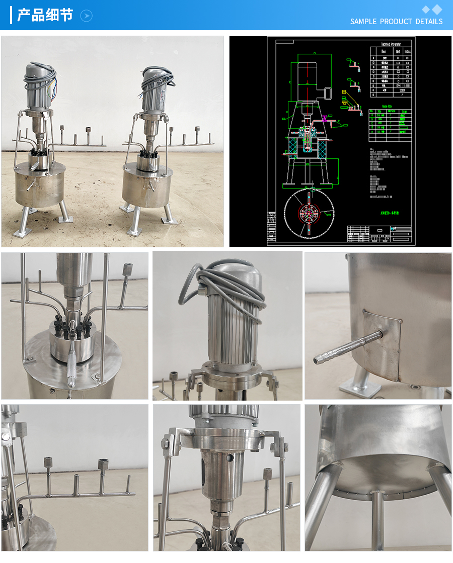 其他附件 如果用户在釜盖、釜体开口、内部结构、压力高低、搅拌桨叶、及增加其他辅助装置(如冷凝回流装置、冷凝器、恒压加料罐、接收装置)等有特殊要求,可完全按用户的要求加工制造