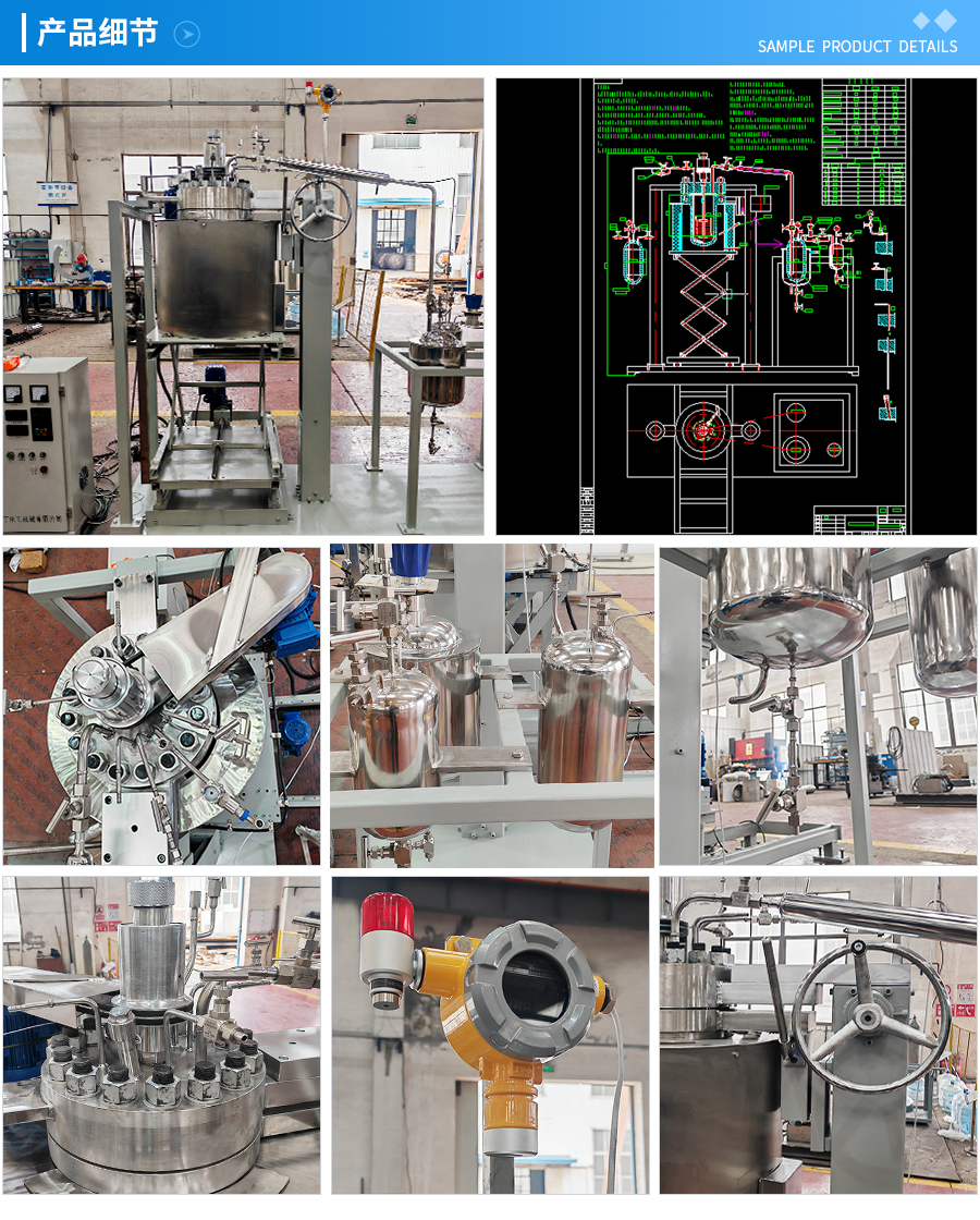 其他附件 如果用户在釜盖、釜体开口、内部结构、压力高低、搅拌桨叶、及增加其他辅助装置(如冷凝回流装置、冷凝器、恒压加料罐、接收装置)等有特殊要求,可完全按用户的要求加工制造
