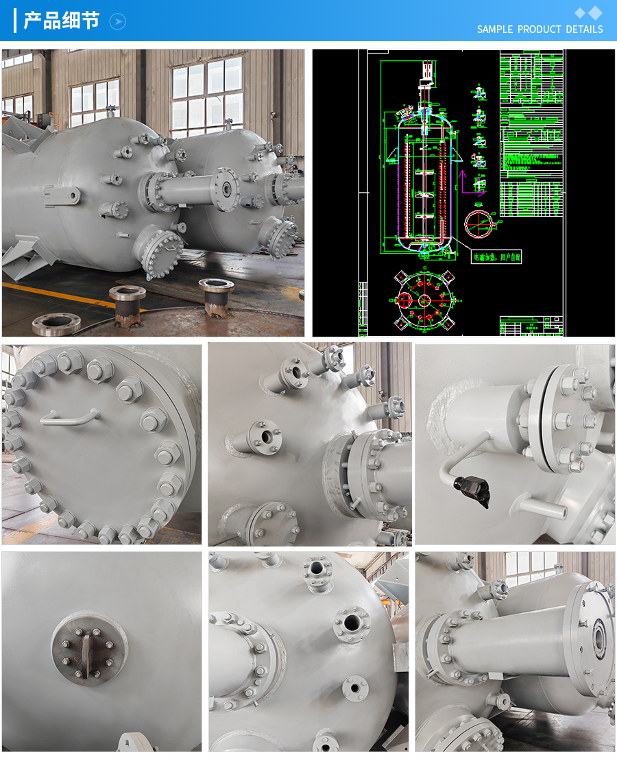 其他附件 如果用户在釜盖、釜体开口、内部结构、压力高低、搅拌桨叶、及增加其他辅助装置(如冷凝回流装置、冷凝器、恒压加料罐、接收装置)等有特殊要求,可完全按用户的要求加工制造。