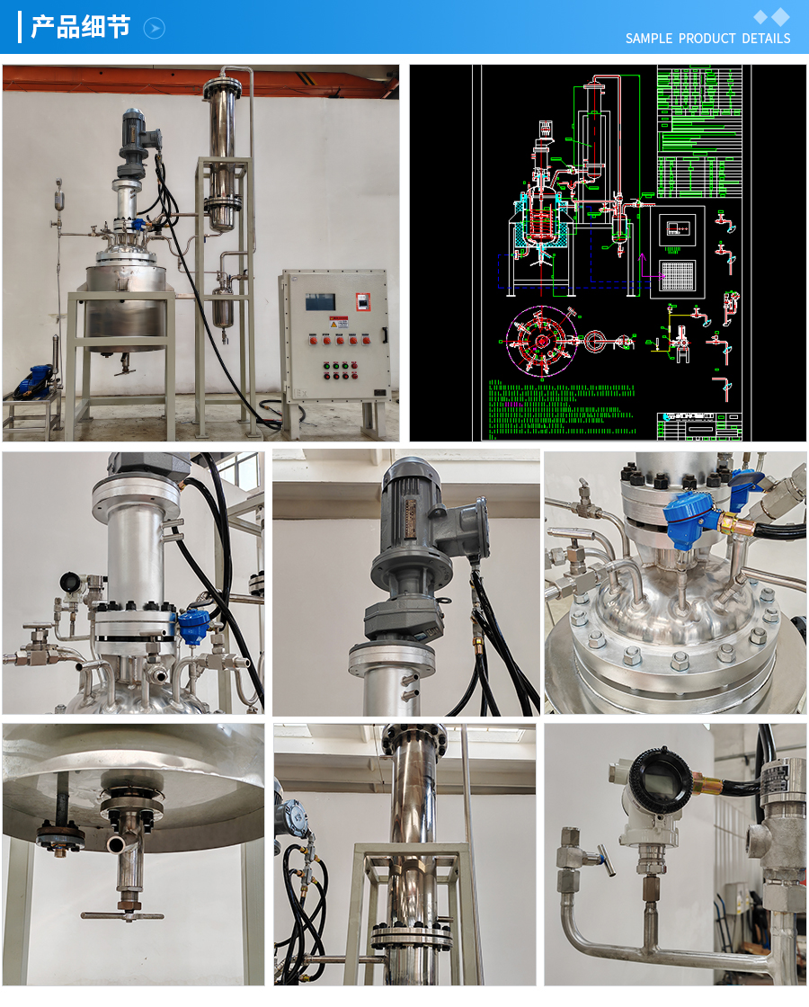 其他附件 如果用户在釜盖、釜体开口、内部结构、压力高低、搅拌桨叶、及增加其他辅助装置(如冷凝回流装置、冷凝器、恒压加料罐、接收装置)等有特殊要求,可完全按用户的要求加工制造