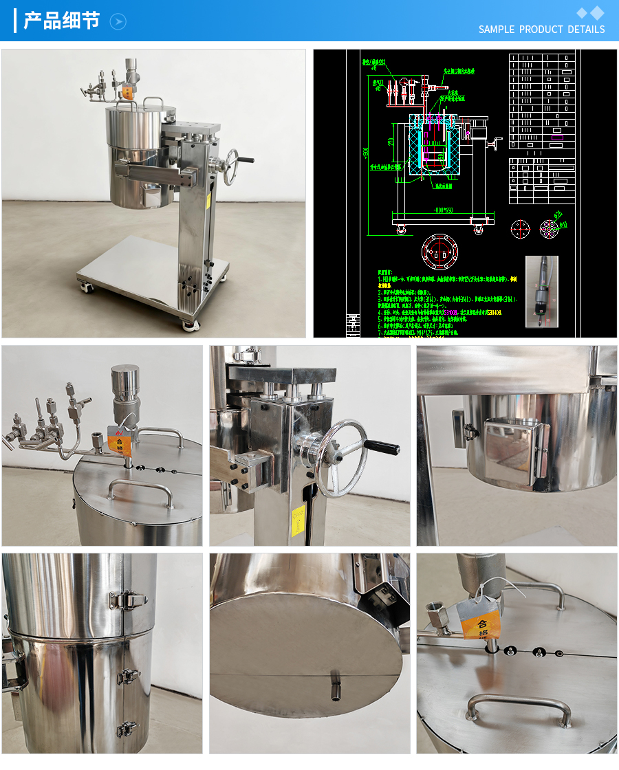 其他附件 如果用户在釜盖、釜体开口、内部结构、压力高低、搅拌桨叶、及增加其他辅助装置(如冷凝回流装置、冷凝器、恒压加料罐、接收装置)等有特殊要求,可完全按用户的要求加工制造